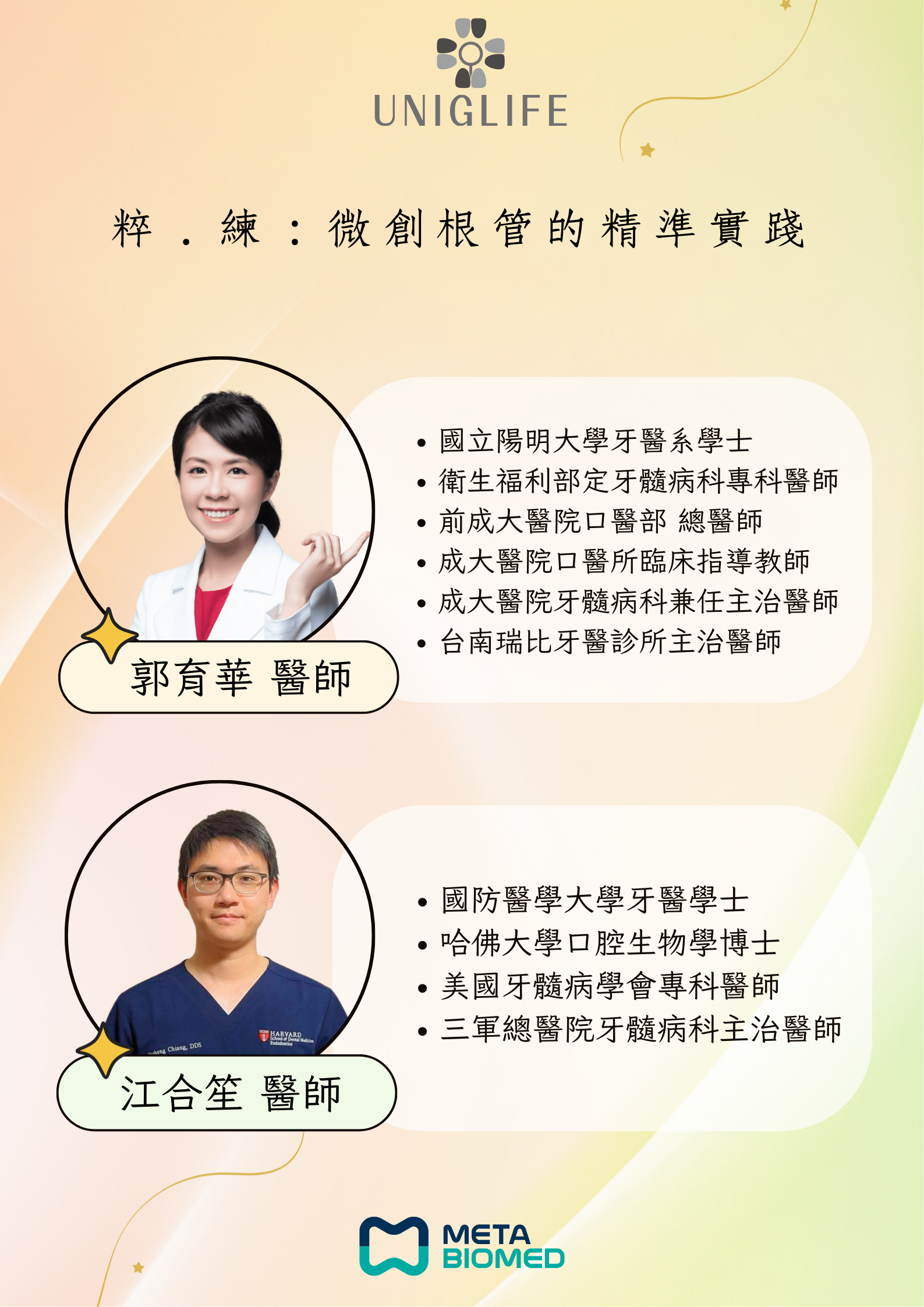 雙師對談: 兩位臨床大師親自分享,掌握技術最前線。
